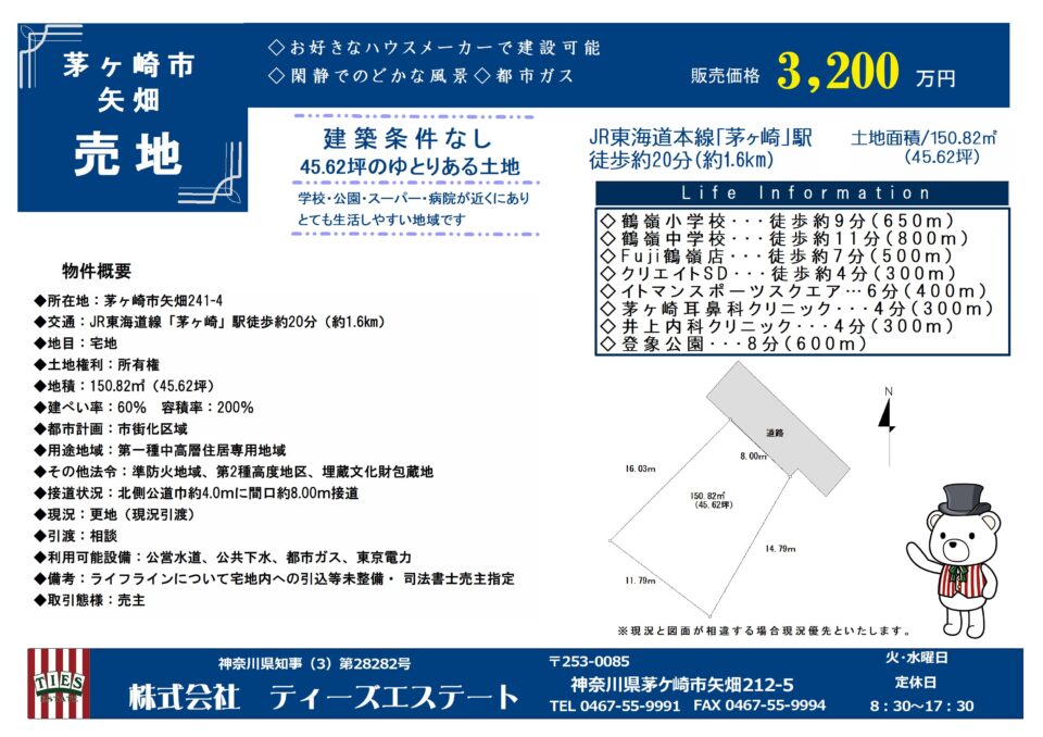 ◇交通:JR東海道線 茅ヶ崎駅 徒歩約20分(約1.6㎞)